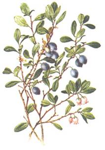 В просторечье ягоды голубики иногда называют “пьяницей”, так как по соседству с ней почти всегда растет багульник болотный, оказывающий на человека одурманивающее действие, которое по ошибке приписывали голубике. Голубика — сильноветвистый кустарник, высотой 30—60 см, с прямостоячими цилиндрическими ветвями и с буроватой или темно-серой корой.