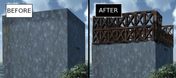 Энергоблок-1 до (слева) и после взрыва (компьютерная модель). Изображение Nesnad с сайта wikimedia.org