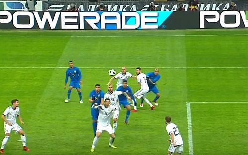 Фрагмент товарищеского матча Россия-Бразилия. Стоп-кадр из видео в YouTube