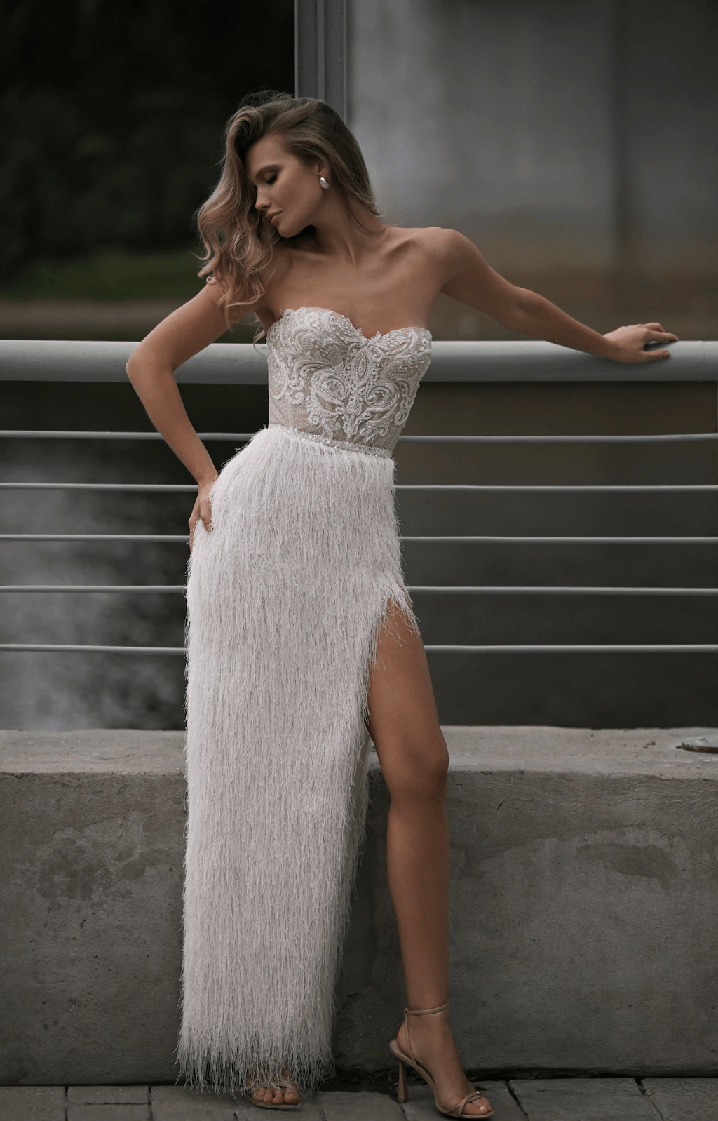 Минимализм — тренд последних лет. Простое платье без излишнего декора может выглядеть не менее эффектно, чем наряд с множеством деталей. Главный акцент здесь делается на качестве ткани, идеальной посадке и изысканном крое. Модели прямого силуэта, «русалка» или А-силуэт прекрасно подойдут для камерных церемоний или городских свадеб. Такие образы универсальны и подходят как для утончённых, так и для уверенных в себе невест, предпочитающих современный стиль.