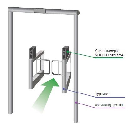 Работает система следующим образом: в зоне контроля устанавливаются 2 пары синхронизированных стереокамер VOCORD NetCam4, которые были специально разработаны для систем биометрической идентификации и отличаются от обычных камер тем, что в них реализованы алгоритмы автоматической адаптации изображения под задачи распознавания образов.