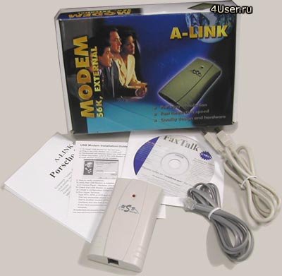 Модем выполнен на чипе от SmartLink. В комплект поставки входил сам модем, телефонный шнур, USB шнур, CD диск с драйверами, краткая инструкция по установке и листик A4 с рекомендациями. Состав ПО на диске был полностью аналогичен Avaks Porsche 5614 RHS.