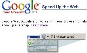 Google выложила на своем сайте тестовую версию Интернет-ускорителя - Web Accelerator, - который, согласно заявлению компании, призван ускорить загрузку сайтов. Web Accelerator работает, посылая запросы URL через специальные серверы компании, способствующие более быстрой загрузки сайта. Приложение также сжимает информацию с сайта перед посылкой на компьютеры пользователей.