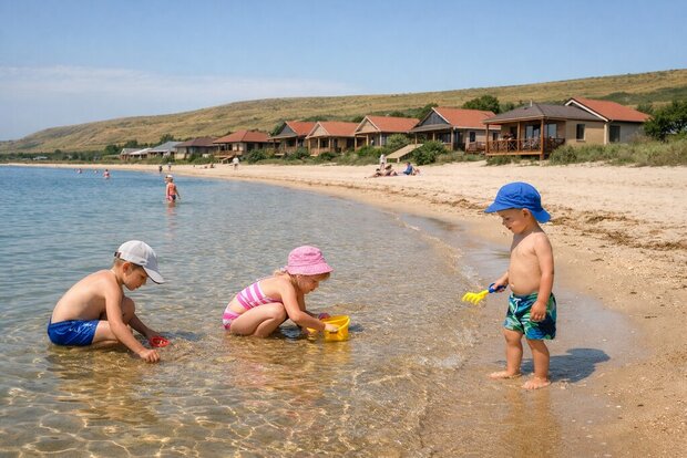 Летом температура воды в Азовском море достигает +24…+29 °C, а в отдельных заливах и лиманах может подниматься ещё выше. Это делает регион особенно привлекательным для семей с маленькими детьми, где важны спокойное море, отсутствие сильных волн и тёплая вода с раннего сезона.