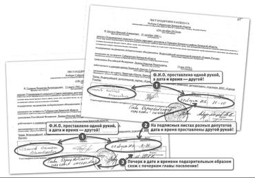 И, что самое примечательное, почерк этого «другого» очень похож на почерк главы Отрадненского поселения, заверившего другой лист. Это хорошо видно на представленной ниже фотографии.