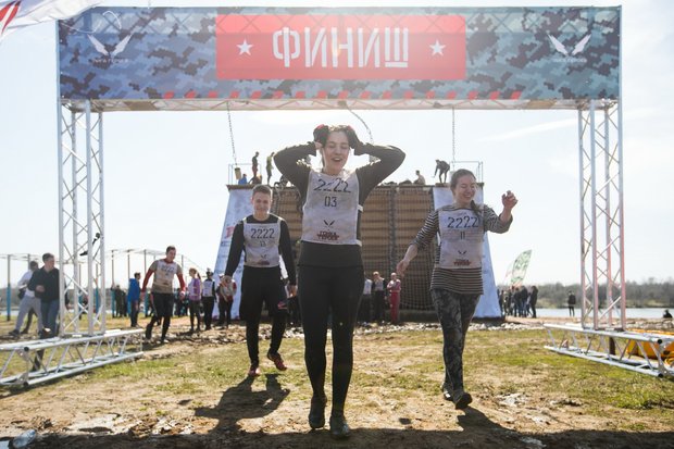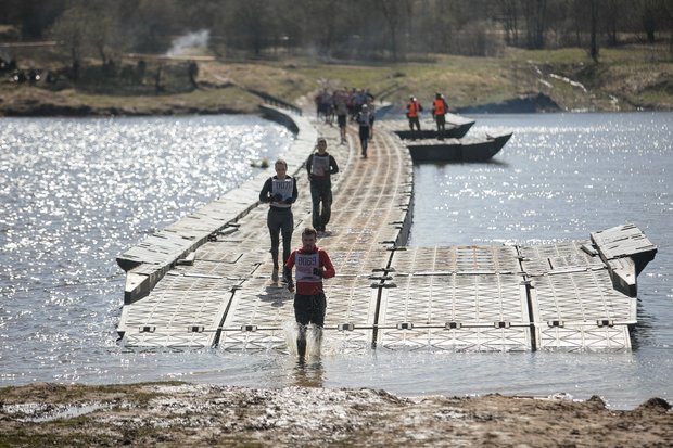 На подмосковном полигоне проверили свою выносливость около 1300 человек. Все они прошли 10-километровую полосу препятствий, предварительно разделившись на взводы по 20 человек под руководством спортивных инструкторов.