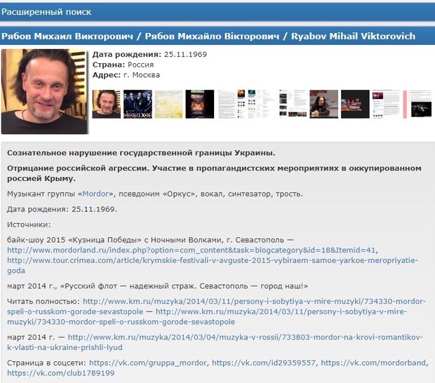 На печально известном украинском сайте «Миротворец» в открытом доступе появились личные данные музыканта, сообщается в пресс-релизе, поступившем в редакцию КМ.RU. Причиной, как указывает «Миротворец», послужил фрагмент концертной версии трека «Форсаж» с пятилетия коллектива, содержащий слова: «Русский флот - надежный страж. Севастополь - город наш». По версии интернет-ресурса, песня MORDOR является «преступлением против территориальной целостности Украины». Таким образом, Михаил Orkus Рябов пополнил ряды деятелей российской культуры, угрожающих основам национальной безопасности соседней, некогда дружественной, державы. Также рокеру вменяется «сознательное нарушение государственной границы» за неоднократные концерты в Крыму. Примечательно, что в качестве «вещественных доказательств» приведены ссылки на две статьи о «Мордоре» с нашего мультипортала!