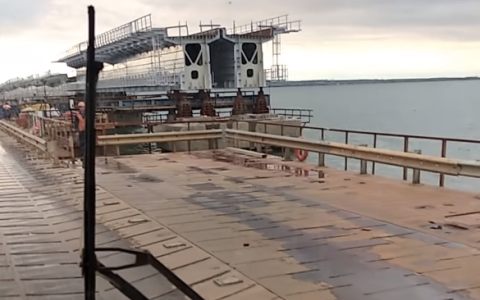 «В процессе опускания на опоры один из железнодорожных пролетов накренился и упал в акваторию, на мелководье», —сообщили в информационном центре «Крымский мост». В результате инцидента никто не пострадал.