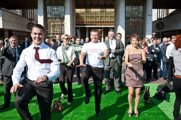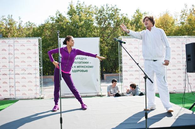 Ведущая зарядки чемпионка мира по художественной гимнастике Ляйсан Утяшева показала несколько простых упражнений, которые помогают поддерживать организм в тонусе и могут войти в повседневную жизнь мужчин. «Ассистировал» гимнастке спортивный комментатор Виктор Набутов. Телеведущий вместе с урологами повторял простые упражнения для поддержания бодрости тела и духа, а площадь РАН на время превратилась в спортплощадку. Ритм современной жизни дает мало возможностей для полноценных физических нагрузок, необходимых для здоровья организма. Врачи-урологи утверждают, что хотя бы 15 минут ежедневных простых упражнений значительно повысят качество жизни каждого мужчины. «Это очень просто, это нужно делать каждый день и взять за основу жизни», - соглашается Ляйсан Утяшева.