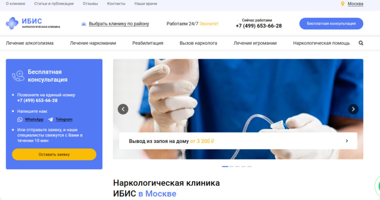 4. Наркологическая клиника «Ибис».