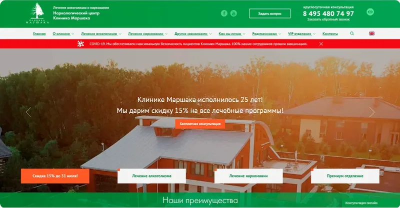 В клинике Маршака можно пройти полноценный курс лечения зависимости от алкоголя и наркотиков. На протяжении всех этапов терапии (от детокса до реабилитации) к каждому пациенту врачи применяют особый подход. Если после лечения происходит рецидив – пациенту бесплатно предоставляется курс лечения, направленный на предотвращение срыва.